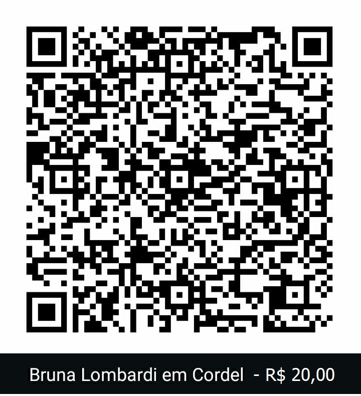 IMPORTANTE: Para comprar o folheto Bruna Lombardi em Cordel, pague com o QR Code abaixo e envie uma mensagem aqui com os dados para entrega. E não esqueça de anexar o comprovante do pagamento. Informamos que o prazo de entrega é, em média, de 8 a 10 dias úteis. Enviaremos por e-mail ou WhatsApp o código de rastreamento para você acompanhar a movimentação da correspondência pelo Site dos Correios.